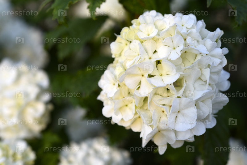 Калина бульденеж. Белые цветы на зеленом кусте
