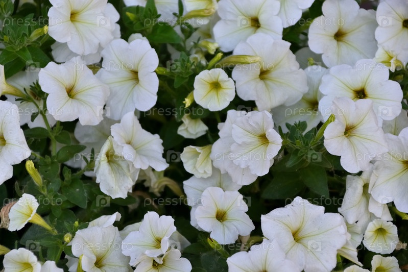 Светлые цветы петунии. Существует множество цветов петунии никтагинифлора