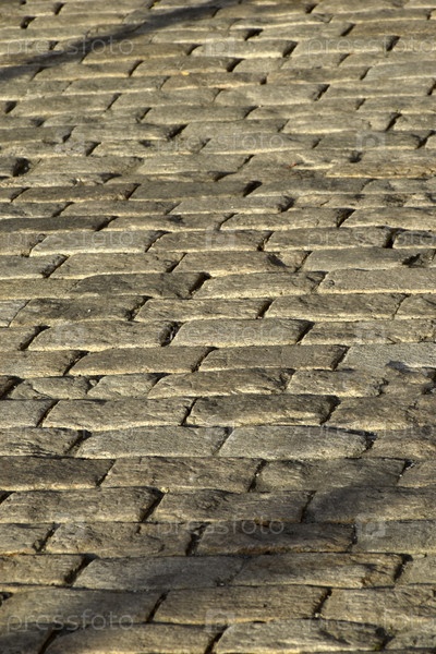 Каменная брусчатка под вечерним солнцем с тенями