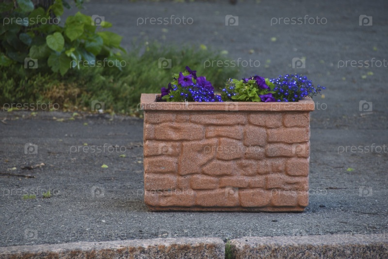Цветочные клумбы в летнем городе. Каменные клумбы с красивыми цветами