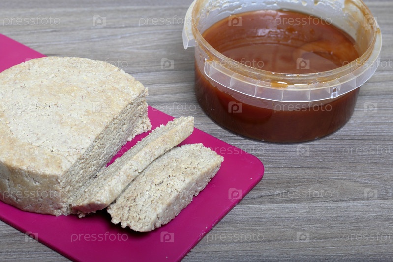 Нарезанная халва из меда, арахиса и семян подсолнечника. Следующий мед в контейнере. Ингредиенты и инструменты для приготовления халвы