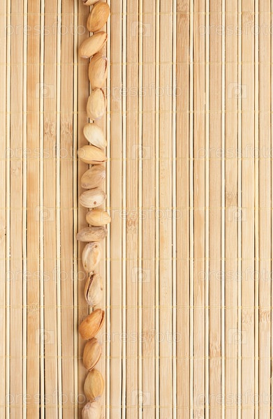 В ящиках полоска фисташек лежит на бамбуковом коврике