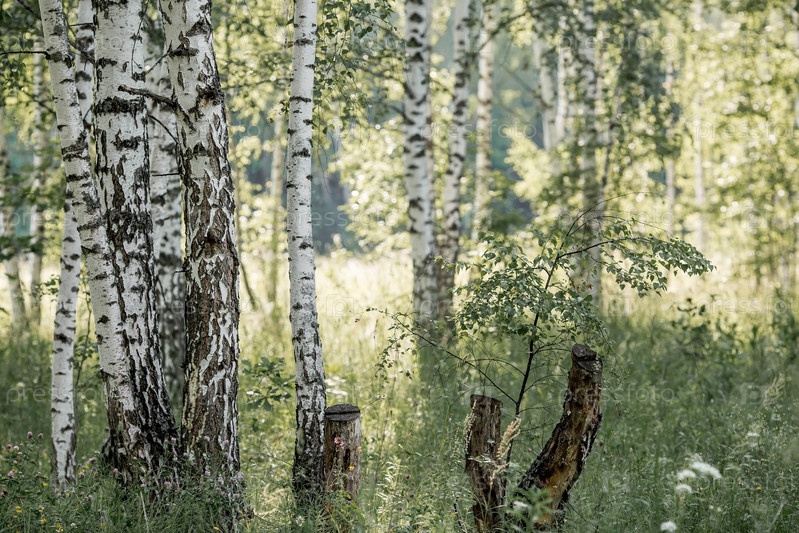 Летний пейзаж. Русская природа и культура. Красивый фон березовой рощи. Береза с распускающимися листьями