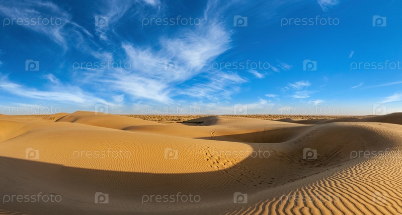 Панорама ландшафта дюн с драматическими облаками в пустыне Тар. Песчаные дюны Сэма, Раджастхан, Индия