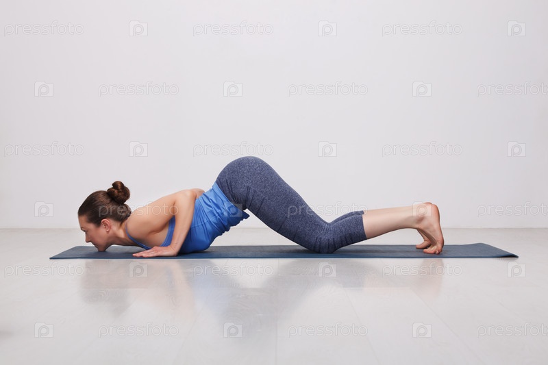 Спортивная женщина-йогиня практикует асану йоги Аштангасану