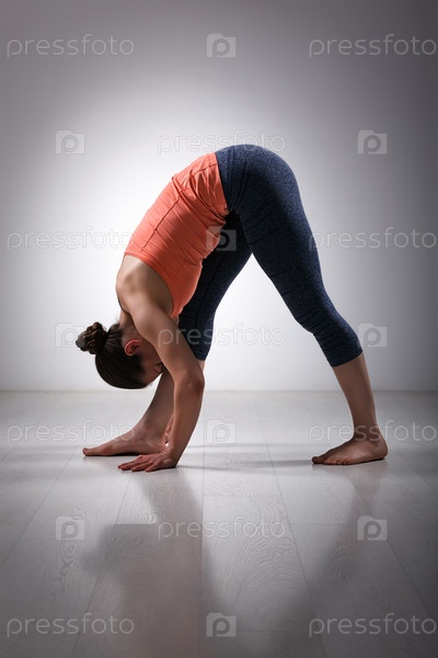 Женщина растягивается в асане йоги Аштанга Виньяса