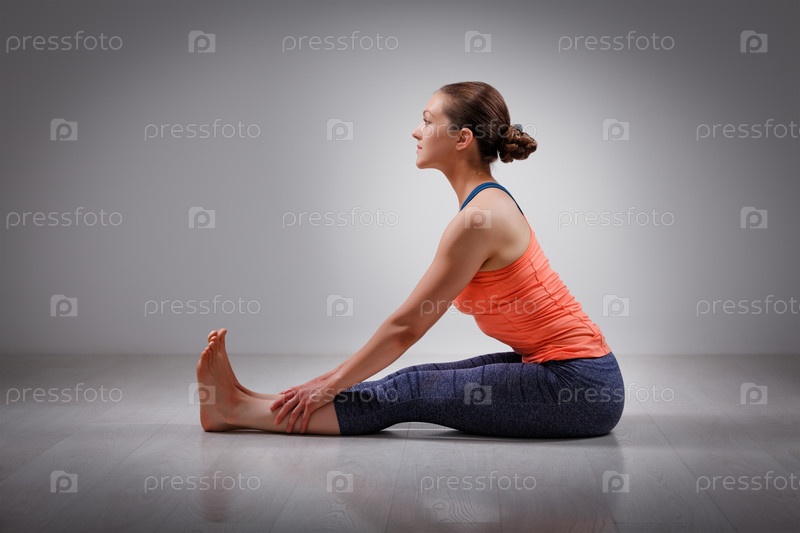 Женщина в Аштанга Виньяса йоге, сгибая спину в асане