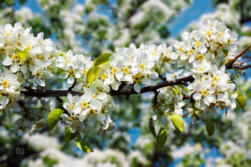 Ветка цветущих цветов яблони весной
