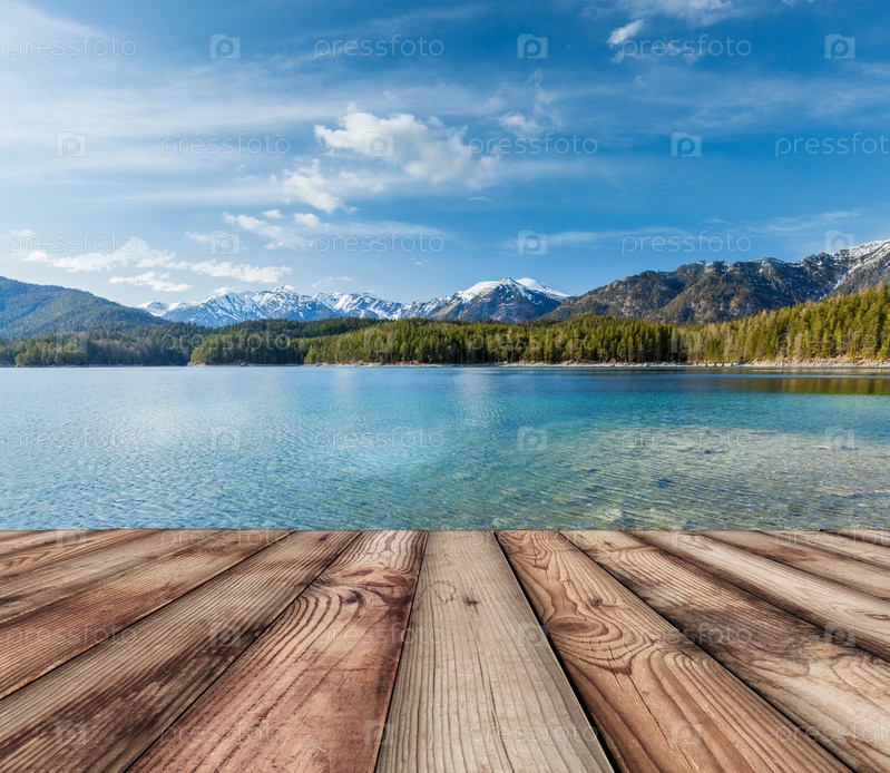 Деревянные доски на фоне озера, Германия