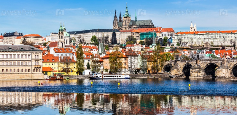 Панорама Градчан (Пражского Града) и собора Святого Вита над рекой Влтавой