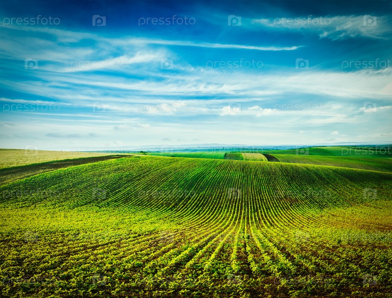 Винтажный ретро-эффект отфильтровал изображение в стиле хипстеров: Катящиеся поля Моравии, Чехия