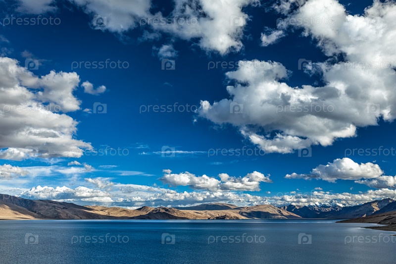 Гималайское горное озеро Цо Морири в Гималаях. Корзок, район Чангтанг, Ладакх, Джамму и Кашмир, Индия