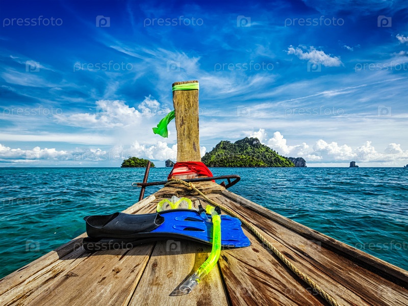 Набор для подводного плавания на лодке, направляющейся на тропический остров в Таиланде