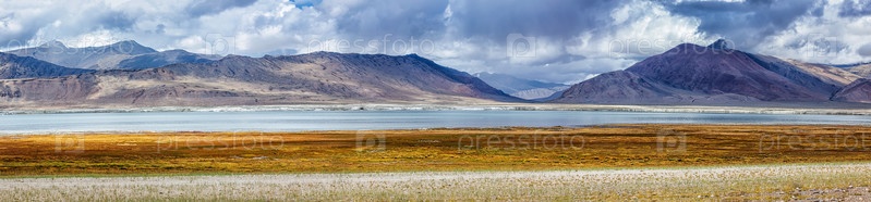 Панорама горного озера Цо Кар в Гималаях