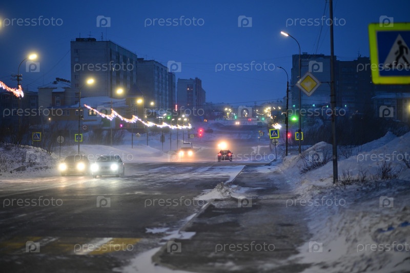Вид на центр города Воркута. Ночь, ветер