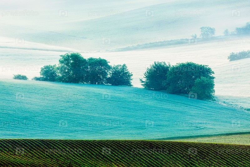 Катящийся пейзаж Южной Моравии утром