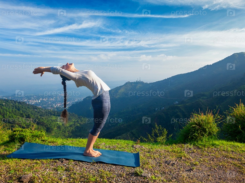 Женщина занимается йогой Приветствие Солнцу Сурья Намаскар