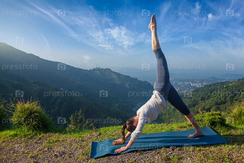 Молодая спортивная женщина занимается йогой на открытом воздухе