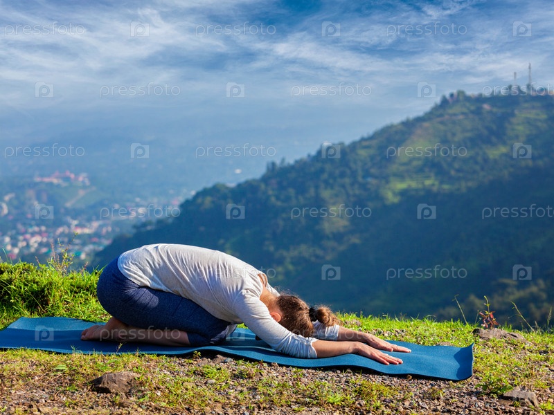 Спортивная женщина занимается йогой асаной Баласана
