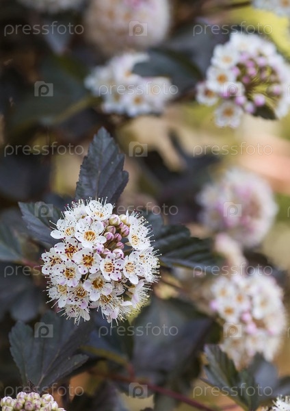 Пузыреплодник калинолистный. Кустарник, цветущий мелкими белыми цветками