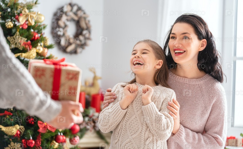 Семья празднует Рождество