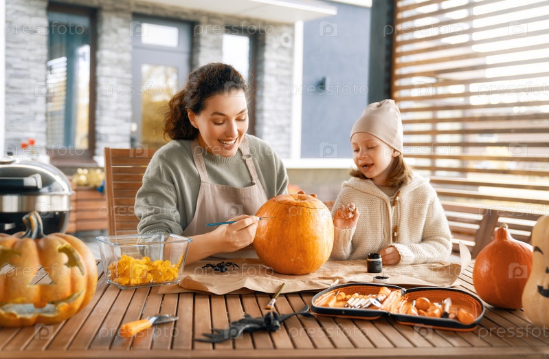 Семья готовится к Хэллоуину