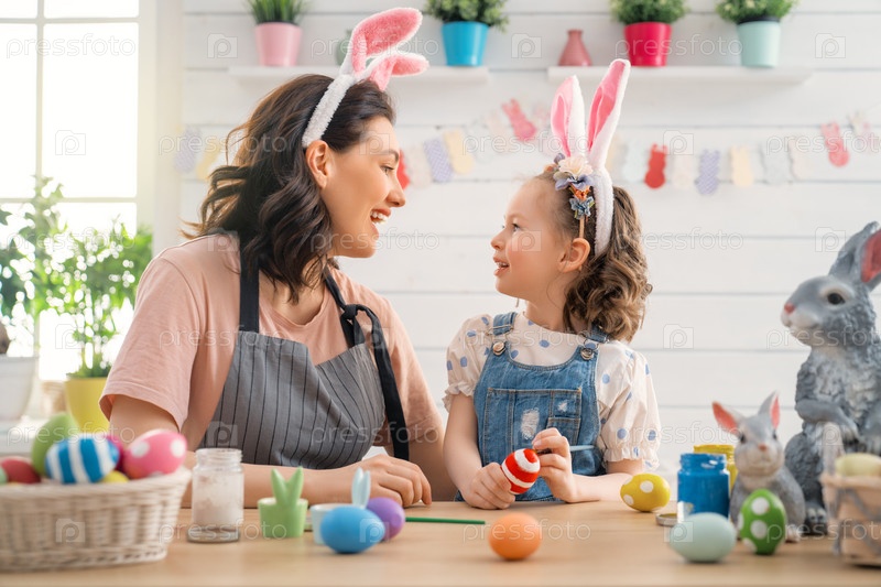 Счастливая семья готовится к Пасхе