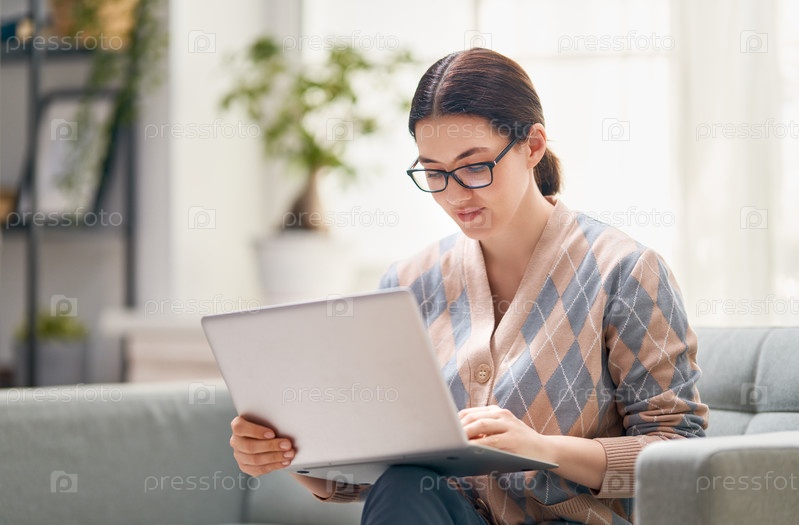 Женщина работает на ноутбуке