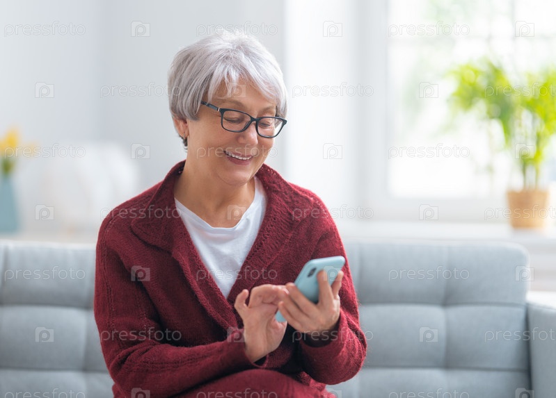 Пожилая женщина пользуется смартфоном