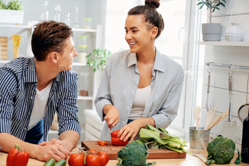 Влюбленная пара готовит настоящую еду