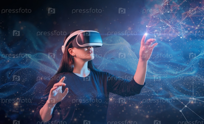 Женщина в очках виртуальной реальности VR