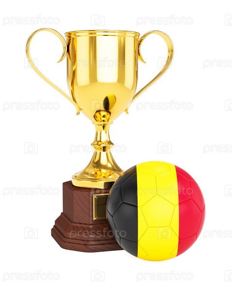 Золотой кубок и футбольный мяч с флагом Бельгии