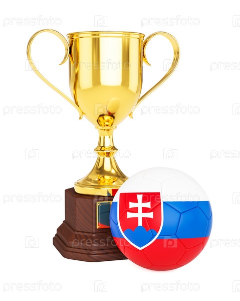 Золотой кубок и футбольный мяч с флагом Словакии