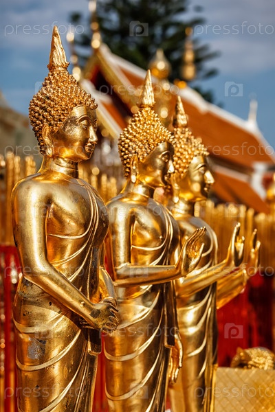 Золотые статуи Будды в Ват Пхра Тхат Дой Сутхеп, Чиангмай, Таиланд