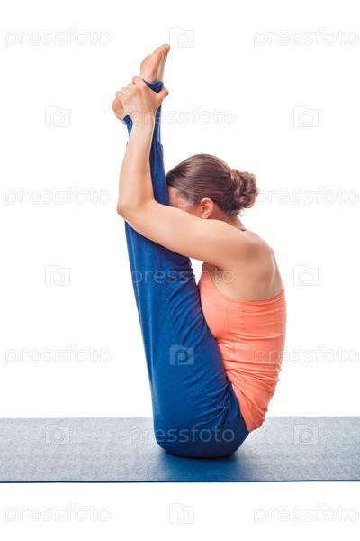 Женщина делает асану Аштанга Виньяса йоги Урдхва мукха пашчимоттанасана