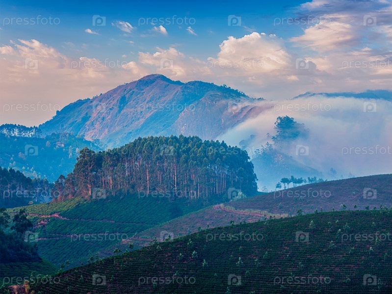 Плантации зеленого чая в Муннаре, Керала, Индия