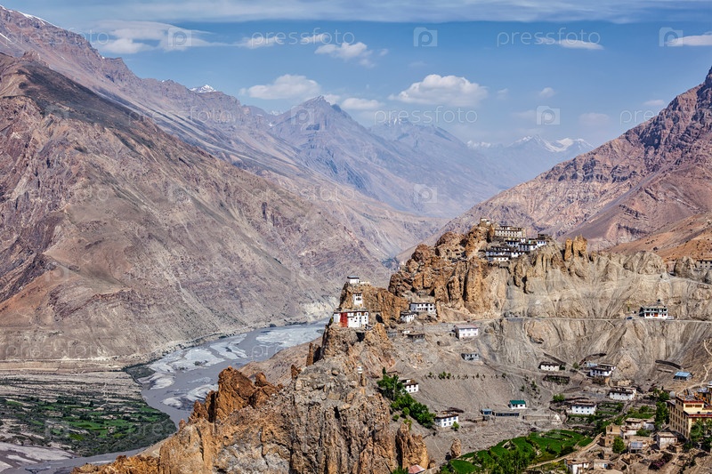 Вид на долину Спити и Дханкар Гомпу в Гималаях
