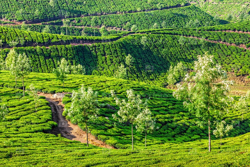 Чайные плантации утром, Муннар, штат Керала, Индия
