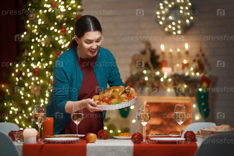 Женщина держит рождественскую индейку