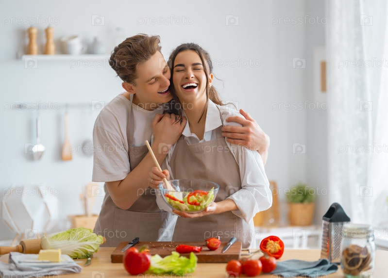 Влюбленная пара готовит настоящую еду