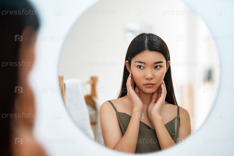 Женщина смотрит в зеркало