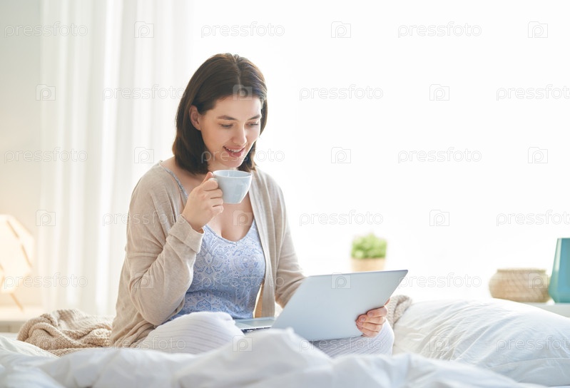 Женщина работает за ноутбуком
