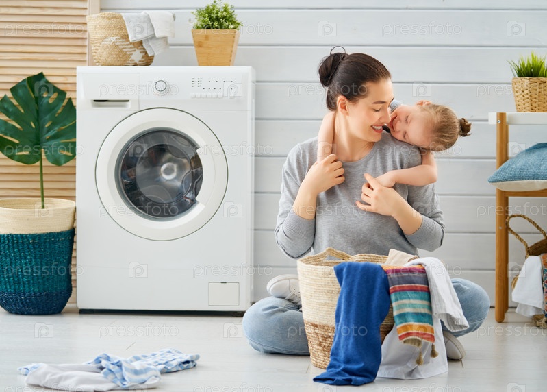 Семья стирает