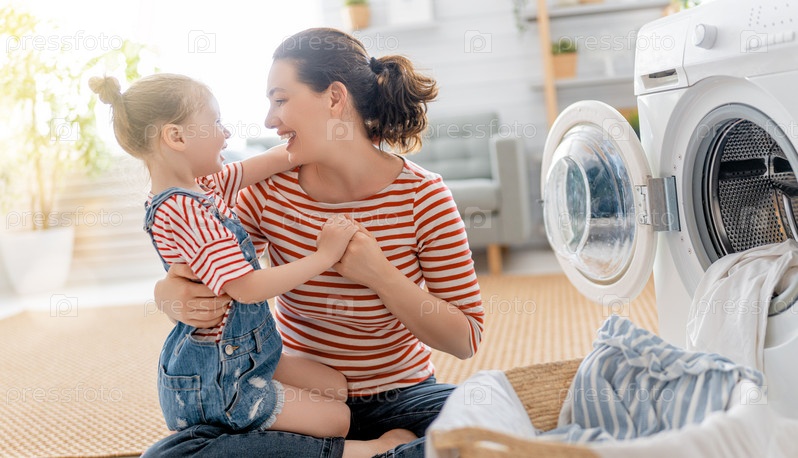 Семья стирает