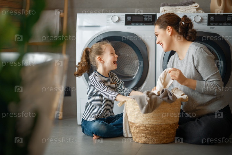 Семья стирает