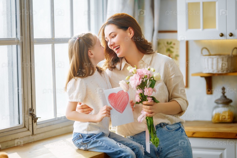 Дочь дарит матери букет цветов