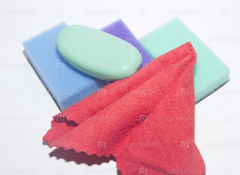 Концепция уборки помещений, офисов и домов. Это инструмент для поддержания чистоты. Мыло, губки, тряпки
