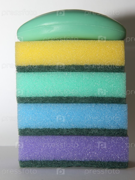 Концепция уборки помещений, офисов и домов. Это инструмент для поддержания чистоты. Мыло, губки, тряпки