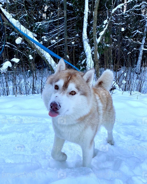 Собака хаски в снегу