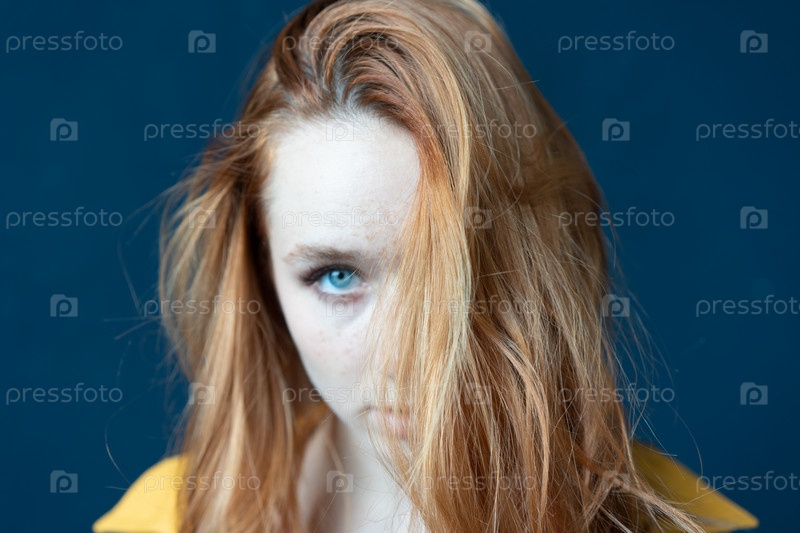 Портрет молодой красивой женщины с рыжими волосами в студии